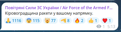 Скриншот повідомлення з телеграм-каналу "Повітряні сили ЗС України"