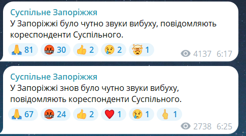 По данным местных СМИ, в Запорожье несколько раз слышались взрывы. Позже их подтвердил Федоров.