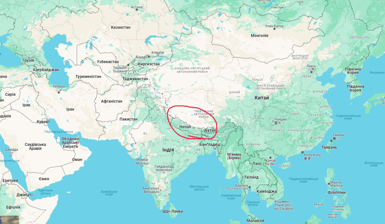 Розташування Непалу на карті. Фото: скриншот